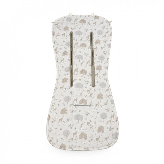 La colchoneta Nara, confeccionada en tejido 100% algodón estampado, es el complemento ideal para las sillas de paseo durante los días más cálidos. Su diseño no solo aporta un toque elegante y delicado, sino que también mejora el confort del bebé gracias a su capa trasera de tejido técnico transpirable, que ayuda a aislar la humedad y evitar la sudoración excesiva.